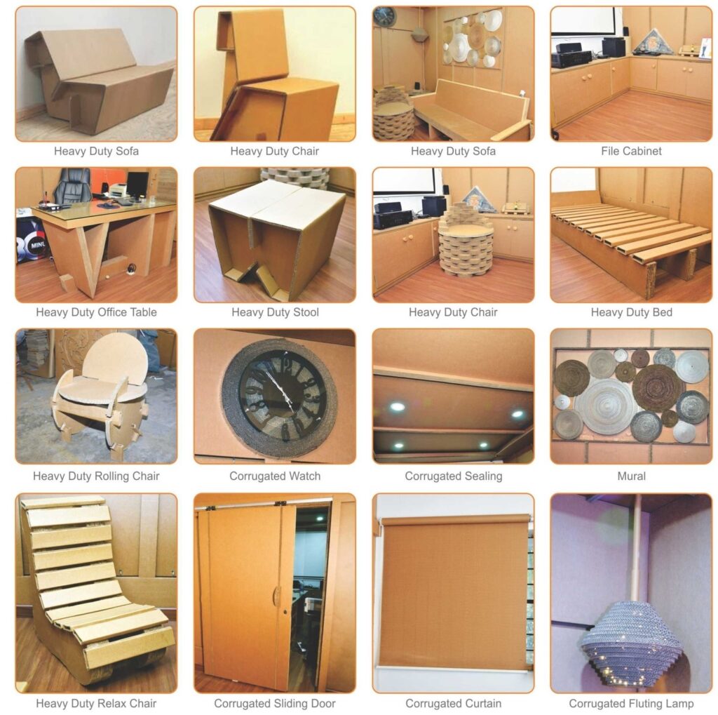 Here are some new and novel ways that cardboard is being used in the furniture and restaurant business. Anand spotted this furniture in everything including bookcases, sofas, chairs and even dining tables is made out of recycled cardboard, and acoustic and insulated material (Sound Proof and Weather proof).
